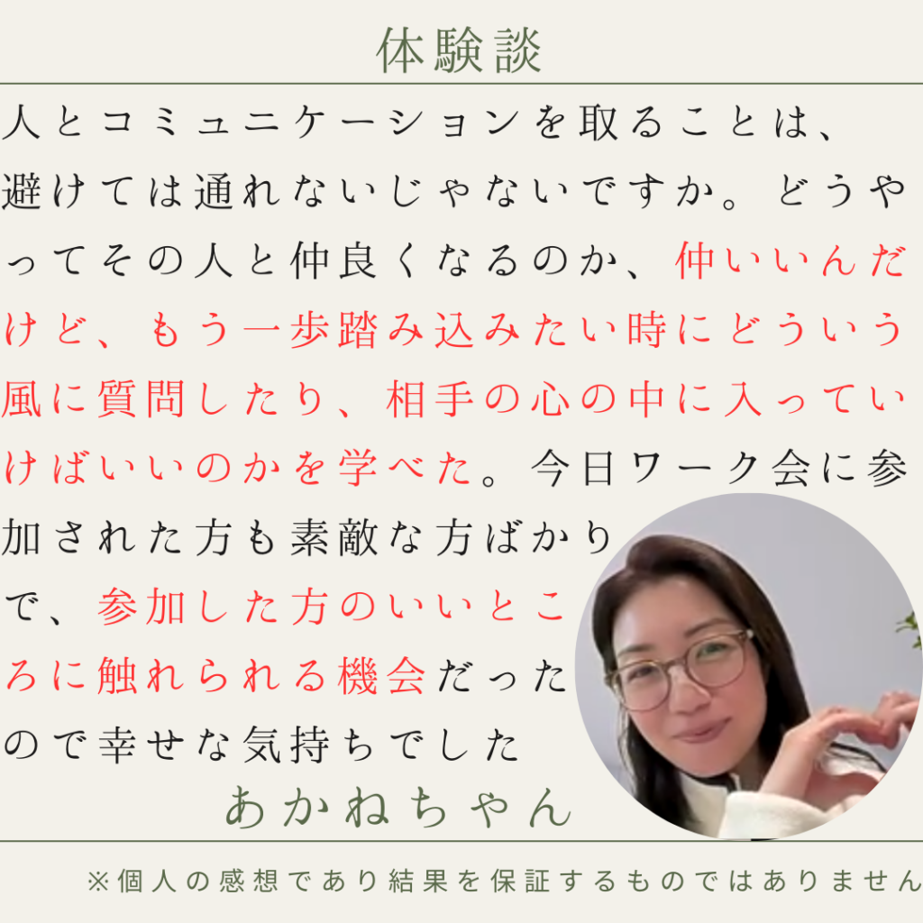 セミナー名 初対面の人と仲良くなれるワーク会