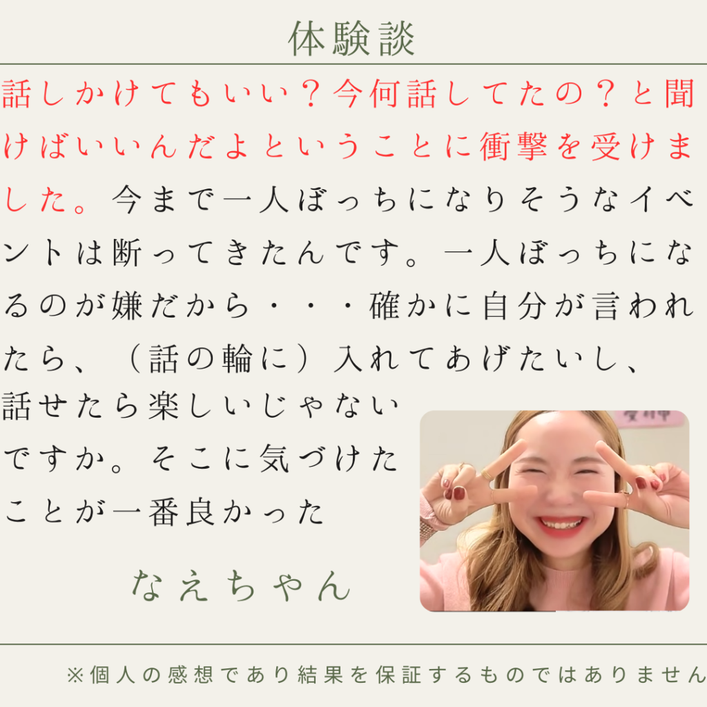 • すぐに仲良くなって緊張せずに話せるようになりたい