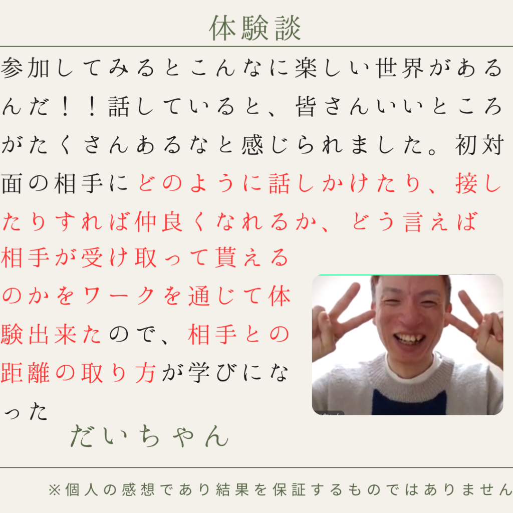 この講座は初対面の人と接してもすぐに仲良くなりたい。その願いを叶えるために作りました